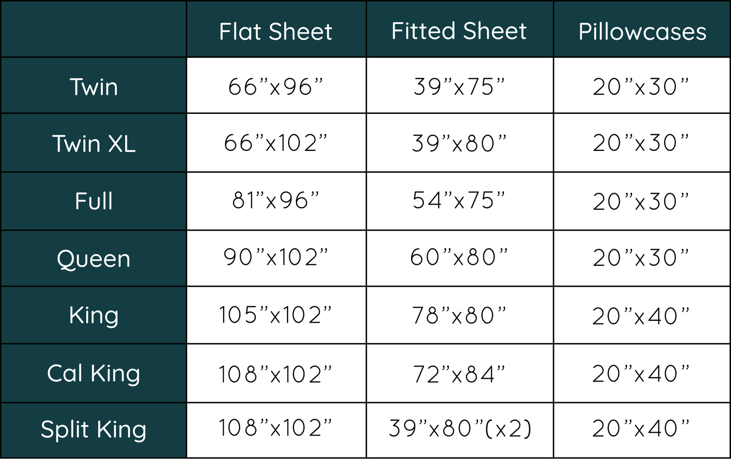Sheets Sizing Guide